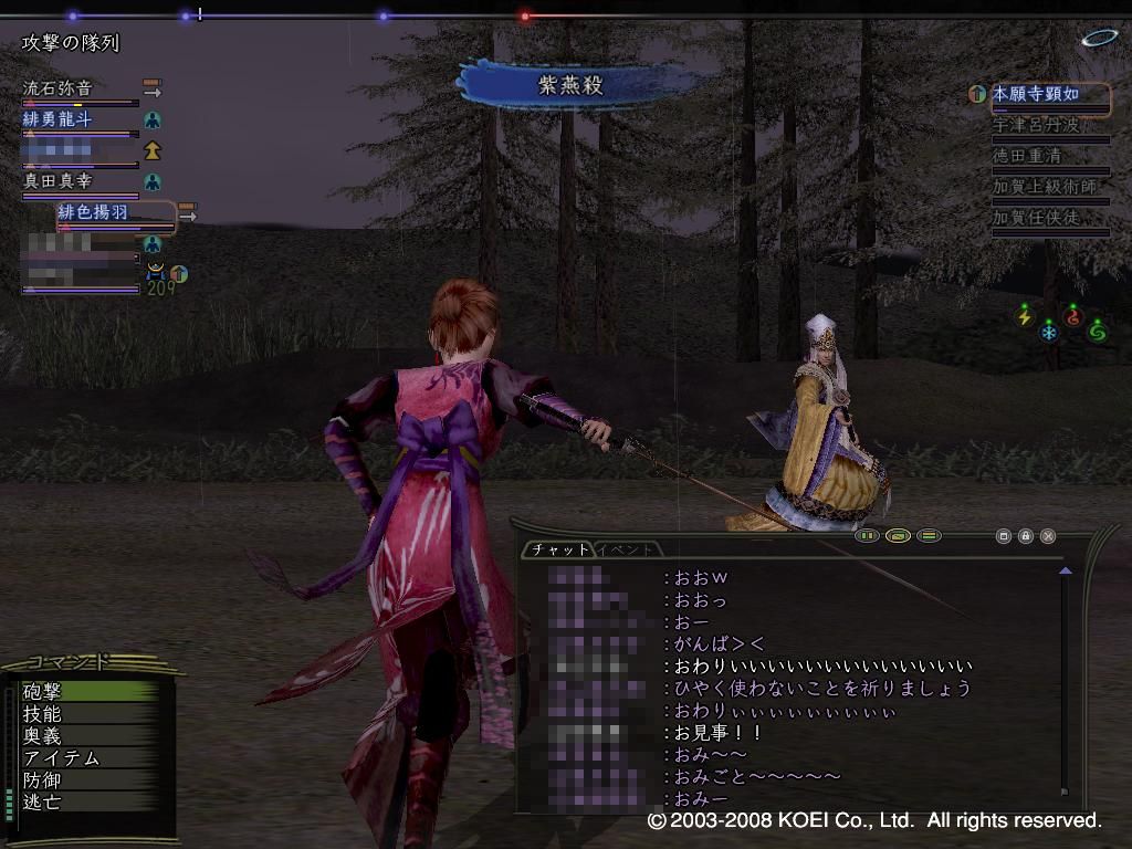 武士(ワンタイ武士)、武士(リュート)、古神、神通、仙論(ユーキサン)、鉄砲+暗殺(当方)